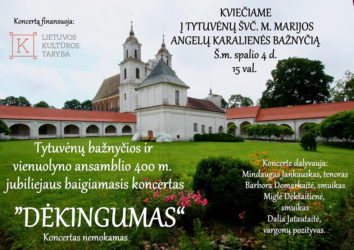 Tytuvėnų bažnyčios ir vienuolyno ansamblio 400 m. jubiliejaus baigiamasis koncertas "DĖKINGUMAS".