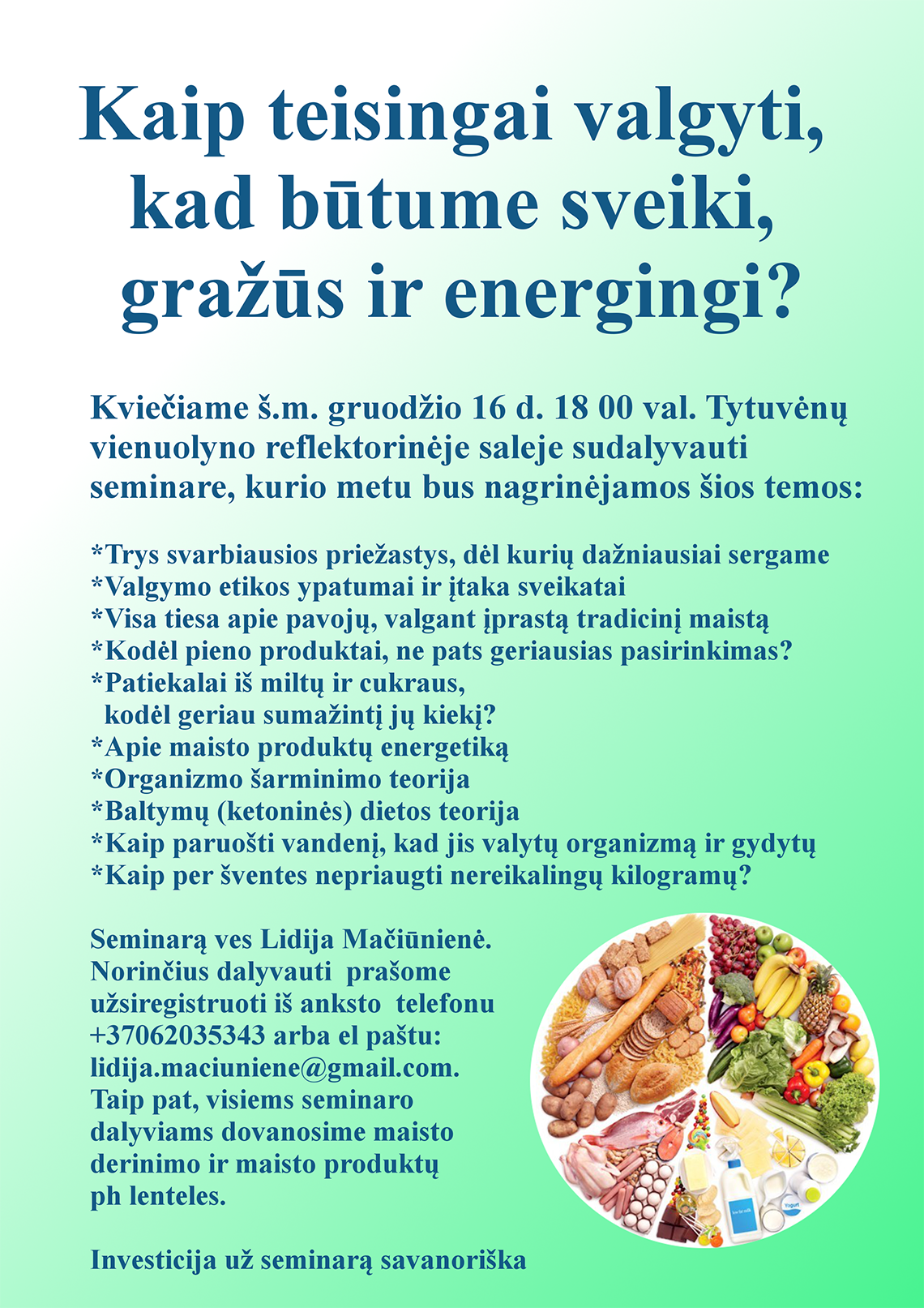 Kviečiame į seminarą! Kaip teisingai valgyti, kad būtume sveiki, gražūs ir energingi?