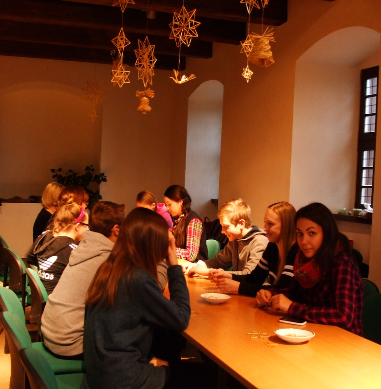 Tylų Advento vakarą, susirinkę senojo Tytuvėnų bernardinų vienuolyno bibliotekos salėje vaikai ir mokytojos apžiūrėjo šiaudinukus - žvaigždes, paukštukus, varpelius, girliandas. Tytuvėnų piligrimų centras vaikams dovanojo edukacinę pamokėlę “Kalėdų žvaigždė”. Džiugu, kad ši idėja susieiti ir prisiminti senuosius šventėms ruošimosi darbus tampa gražia tradicija, kad visi kartu randame būdų kaip nudžiuginti artimą dalinantis kūryba, dvasine šiluma ir gerumo dovanomis.