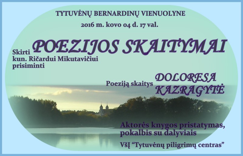 Poezijos skaitymai skirti kun. Ričardui Mikutavičiui šiemet kovo 4 dieną, penktadienį, 17 valandą, Tytuvėnų bernardinų vienuolyno refektorinėje salėje.