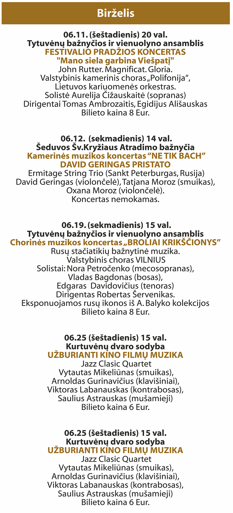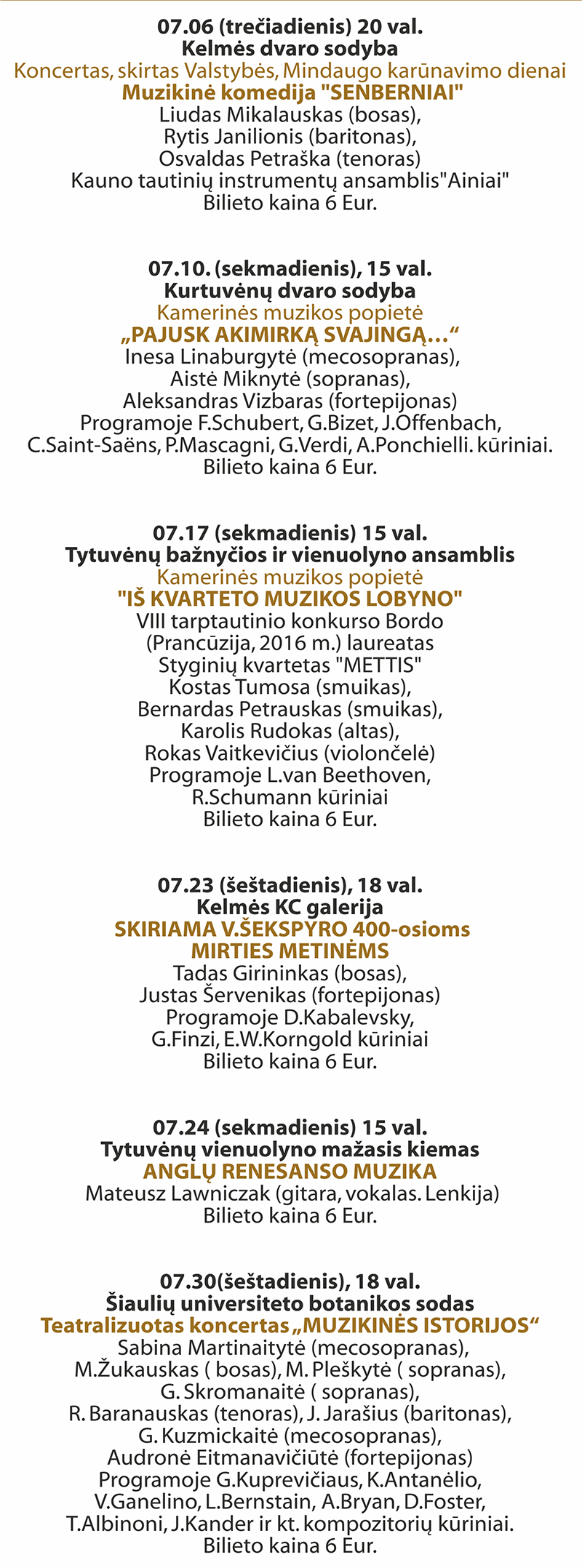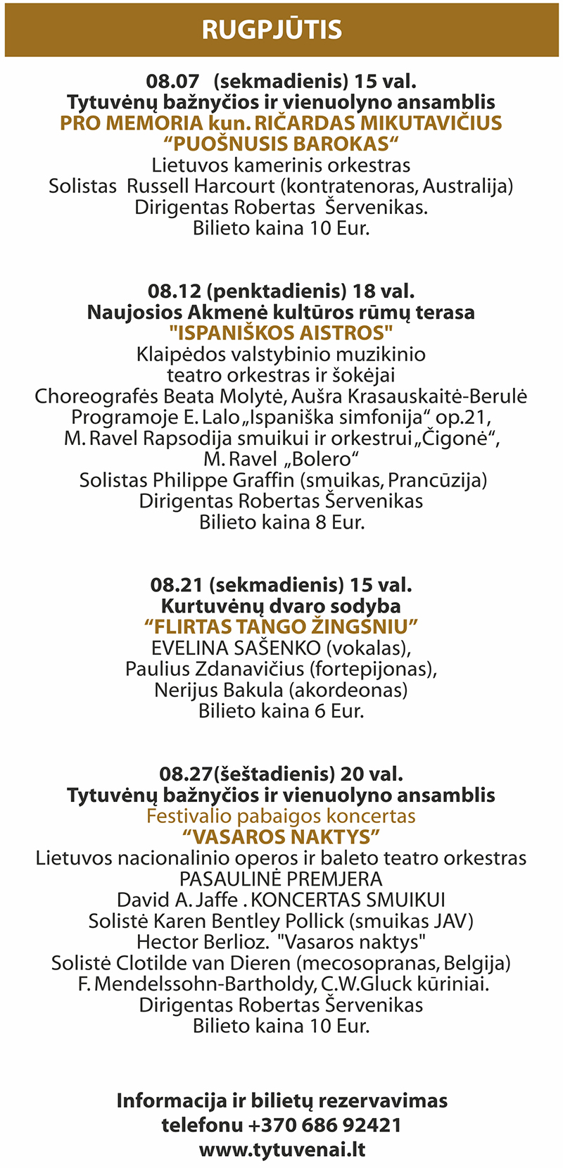 Tarptautinio Tytuvėnų vasaros festivalio 2016 programa.