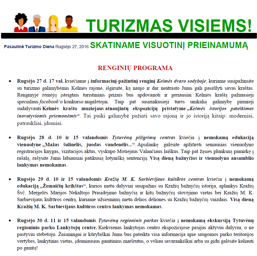 Pasaulinė Turizmo Diena Rugsėjo 27, 2016