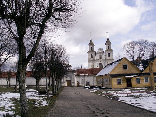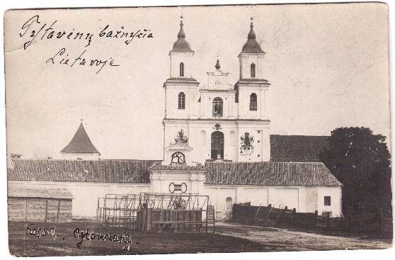 ...Į Tytuvėnus atsikėlus bernardinams (1614 m.) ir laikinai apsigyvenus mediniuose namuose prie šv. Jurgio bažnytėlės, kilo smarkus ginčas dėl ansamblio statybų vietos. Bernardinai norėjo bažnyčią ir vienuolyną statyti kiek atokiau nuo turgaus aikštės, pušyno pakraštyje, o dalis statybinių medžiagų jau buvo suvežta prie aikštės rytų kraštinės, ant kalvelės prie užtvenkto ežeriuko...