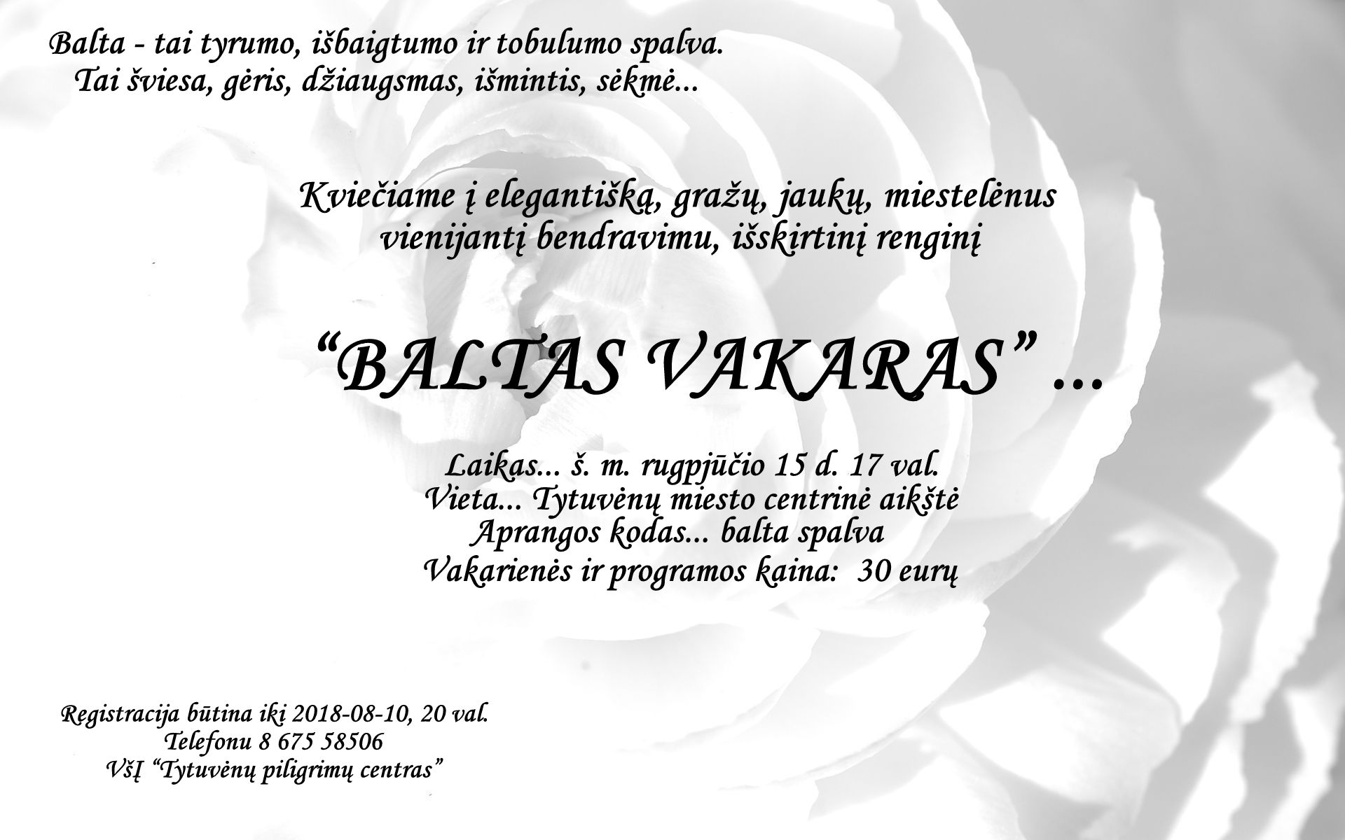 Kviečiame visus į „Baltąjį vakarą“. Mes pasirūpinsime vakariene ir menine programa, Jūs - gera nuotaika ir balta apranga.