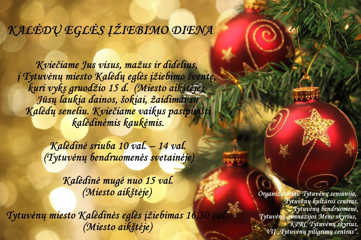 Kviečiame Jus visus, mažus ir didelius, į Tytuvėnų miesto Kalėdų eglės įžiebimo šventę, kuri vyks gruodžio 15 d.