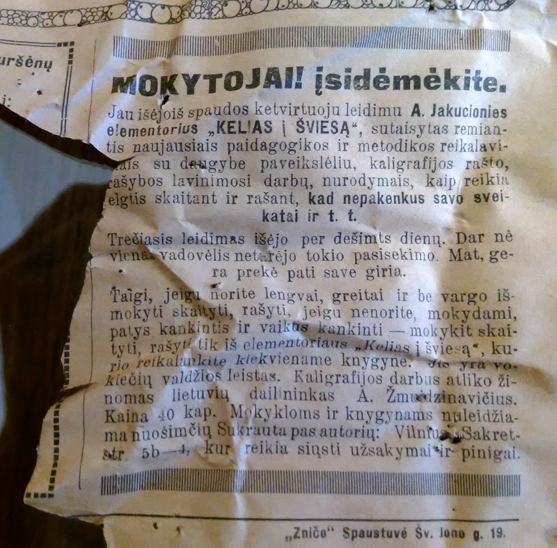 Gerokai laiko aplamdytas spaudinys po šimto metų skelbia: