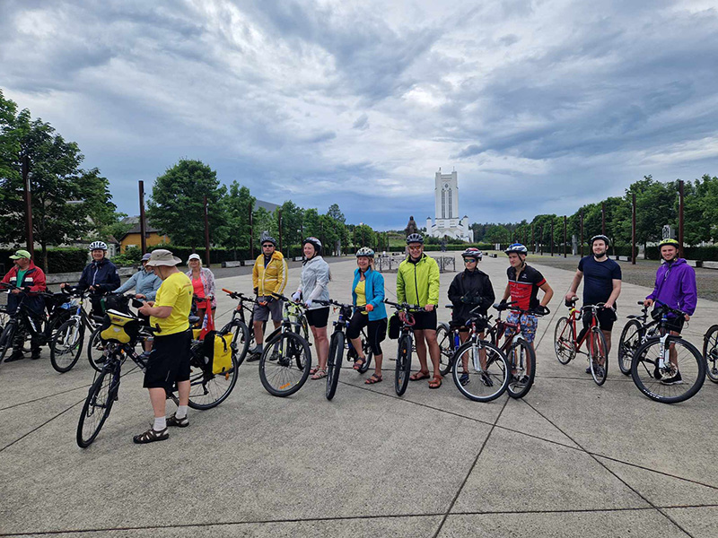 Pirmąją kelionės dieną dviratininkai dar aplankė Kiaunorių Šv. Juozapo bažnyčią ir susitiko su kunigu Donatu Grabažiu, kuris papasakojo apie šią, taip pat PakapėsŠvč. Mergelės Marijos Ėmimo į dangų ir Rėkyvos Šv. Juozapo Darbininko bažnyčias. Ar žinojote, jog Rėkyvoje, Šiaulių rajone stūkso turbūt mažiausia bažnyčia Lietuvoje?