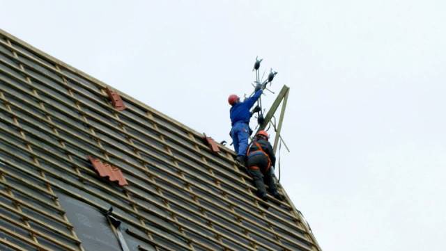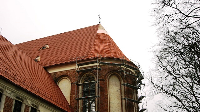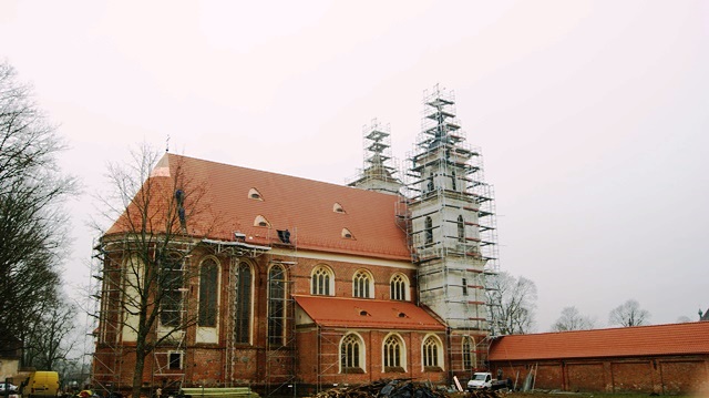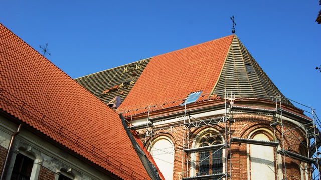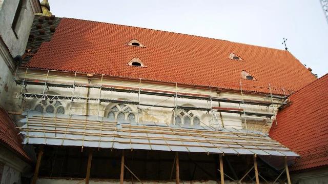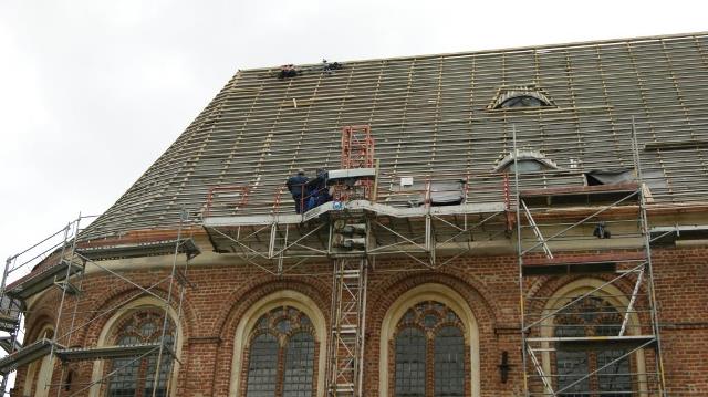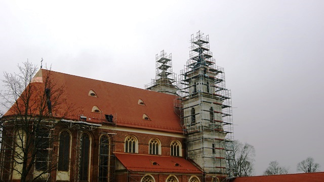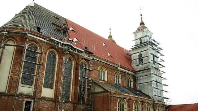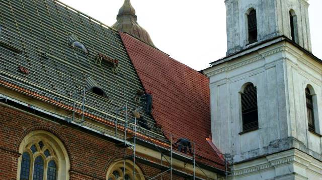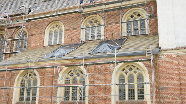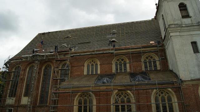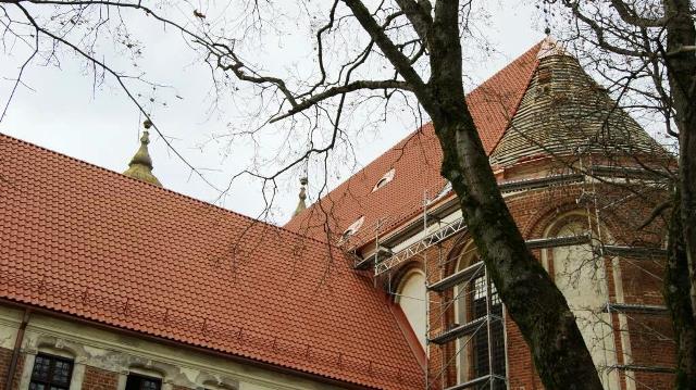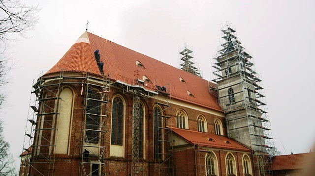 Toliau sparčiai vyksta Tytuvėnų bažnyčios stogo keitimo darbai. Ruošiamasi keisti bažnyčios bokštų stogo dangą.