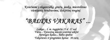 Kviečiame visus į „Baltąjį vakarą“. Mes pasirūpinsime vakariene ir menine programa, Jūs - gera nuotaika ir balta apranga.
