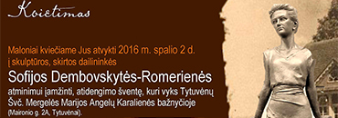Maloniai kviečiame Jus atvykti 2016 m. spalio 2 d. į skulptūros, skirtos dailininkės Sofijos Dembovskytės-Romerienės atminimui įamžinti, atidengimo šventę.