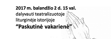 Kviečiame 2017 m. balandžio 2d. 15 val. dalyvauti teatralizuotoje liturginėje istorijoje "Paskutinė vakarienė".