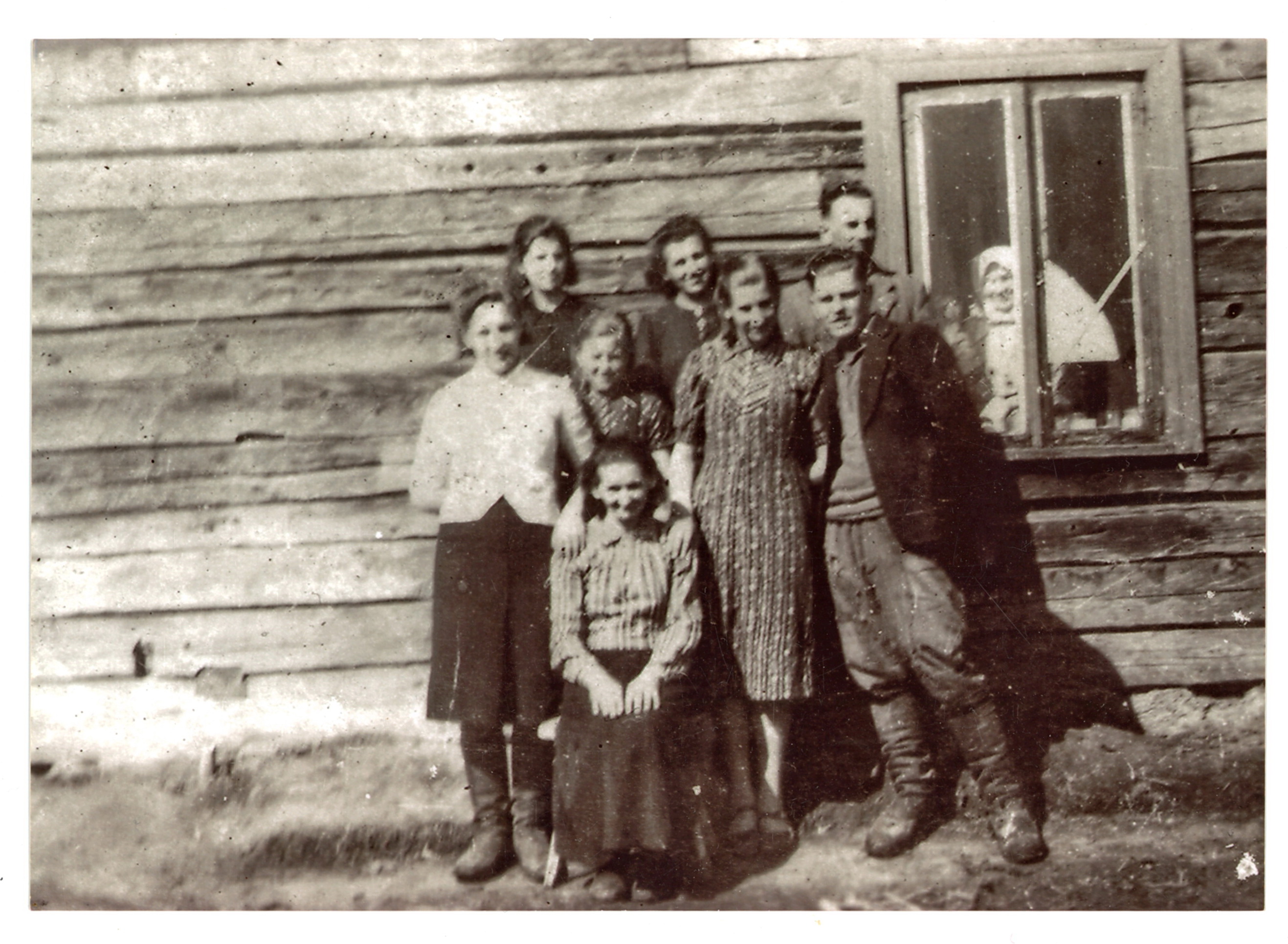 Karo metais, per Velykas. Pirmoji iš kairės stovi Veronika Radzevičiūtė, už jos – Aleksandra Radzevičiūtė, trečioje eilėje viduryje – Karolina Radzevičiūtė. Sėdi – motina Marcelė Radzevičienė. (Iš Aleksandros Radzevičiūtės-Caporkienės-Liaudineckienės archyvo)