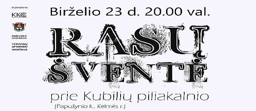 Pagal senovės lietuvių papročius ir tradicijas Rasų šventė bus švenčiama birželio 23 dieną 20 val. prie KUBILIŲ piliakalnio (Kelmės raj.)